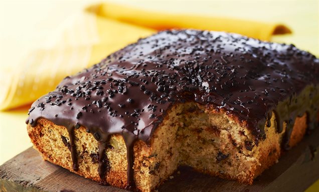 Pisk sukker, æg og vaniljesukker cremet og luftigt. Tilsæt banantern, hakket chokolade, sigtet mel og bagepulver til æggemassen, og rør godt. Rør den smeltede smør i dejen. Kom dejen i en ø 24 cm springform, eventuelt med bagepapir i bunden.