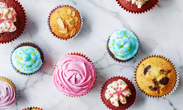 Bag kagerne i ca. 20-25 min. i ovnen. Lad kagerne afkøle på en bagerist.