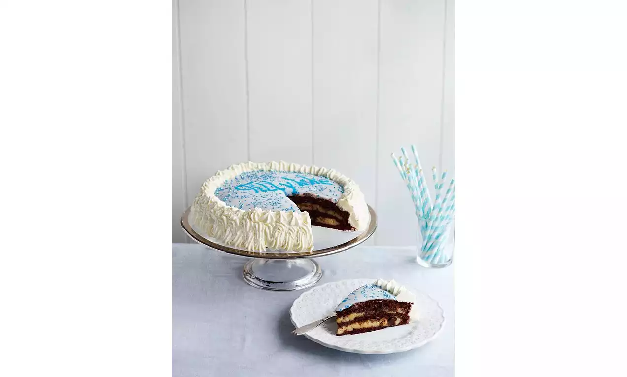 Pynt lagkagen lige inden servering.