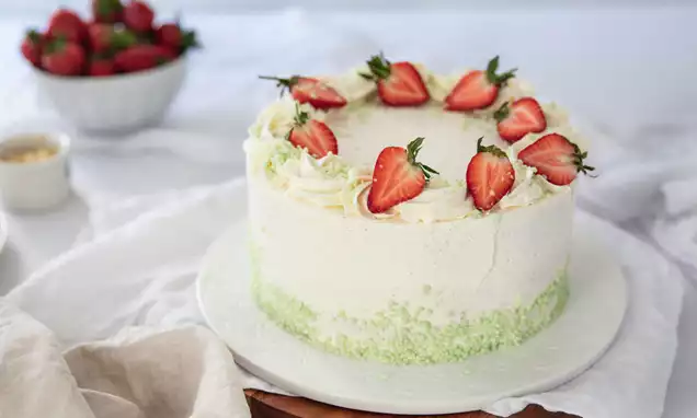 Bag bunden midt i ovnen i 18-20 minutter. Afkøl bunden helt i formen på en bagerist.