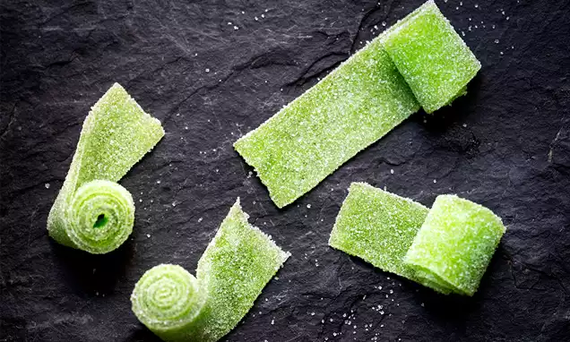 Kom sukker og majsstivelse i en gryde, og rør det godt sammen, så der ikke dannes klumper i karamellerne. Kom derefter vand, smør, glukosesirup, citronsyre og gul farve i samme gryde, og rør det sammen. Kog massen op til 120 grader uden at røre i karamelmassen. Hæld den bagefter over i en skål, der er smurt med smagsneutral olie.
