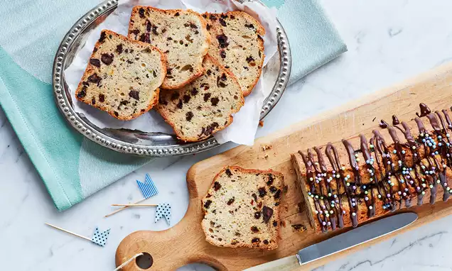 Rør smeltet smør og sukker sammen i en skål. Hak Appelsinskallen fint. Tilsæt kærnemælk og hakket appelsinskal stykker sammen med sigtet hvedemel, kanel og Natron og rør dejen godt sammen. Hæld dejen i en bradepande (23 x 33 cm) beklædt med bagepapir.