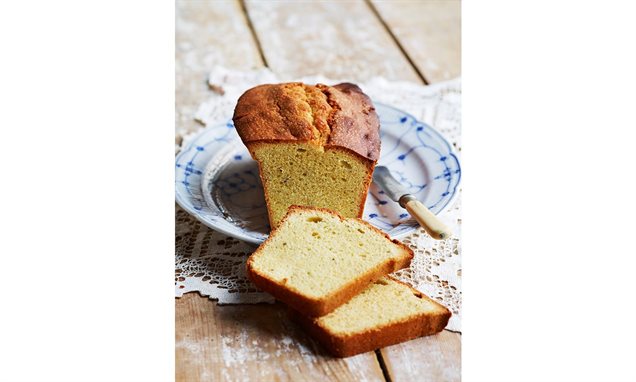 Pisk smør, sukker og Vanilla Paste sammen med en håndmixer i ca. 5 minutter til blandingen er hvid og luftig. Tilsæt æggene et ad gangen og pisk grundigt efter hvert æg. Pisk æggeblommerne i. Tilsæt melblandingen og citronskal. Pisk ved lav hastighed til dejen akkurat er samlet. Hæld dejen i en sandkageform (10 x 28 cm), der er smurt med smør og drysset med mel.