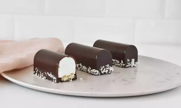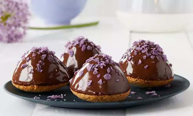 Dyp forsigtigt kagerne i chokoladen, så alt chokolade-ganachen er dækket. Drys med lakridspulver inden chokolade størkner, og opbevar kagerne køligt indtil servering.