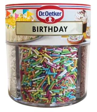 Dyp forsigtigt flødebollerne i chokoladen, helt ned til kiksen således at alt skummet dækkes helt af chokoladen. Lad chokoladen dryppe let af og sæt flødebollerne på et fad eller på et stykke bagepapir. Drys med en af de fire forskellige krymmeler i Birthday Mix inden chokoladen når at sætte sig. Lad chokoladen sætte sig helt inden servering.