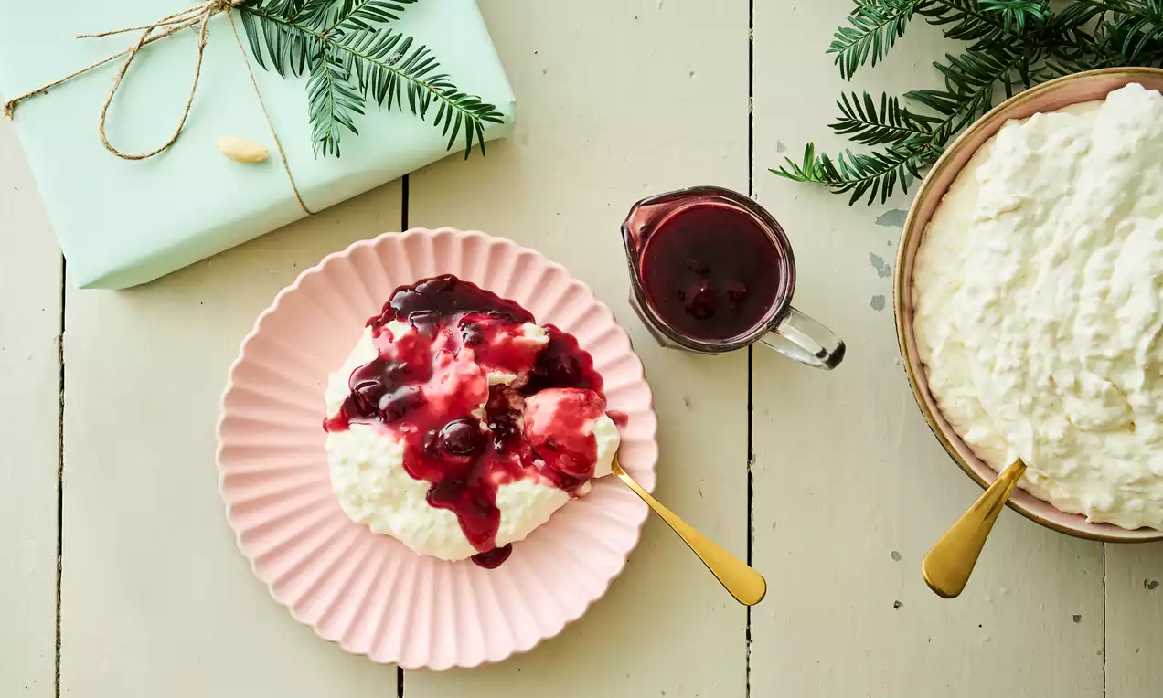 Server ris à l'amanden med kirsebærsauce eller prøv at servere en frisk appelsinsirup til.