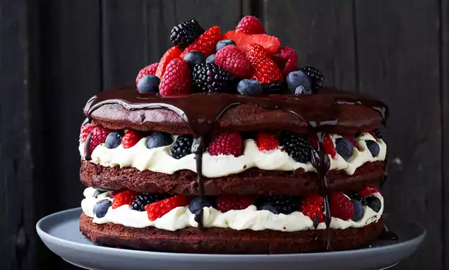 Saml først kagen kort inden servering, da bundene ellers vil blive bløde.