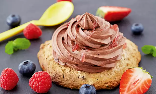 Pisk den resterende fløde (3 dl) til en let flødeskum.